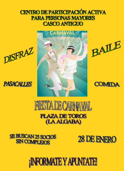 El próximo 28 de enero en la localidad sevillana de La Algaba, se va a celebrar la II FIESTA DE CARNAVAL para Mayores. El programa será como sigue: