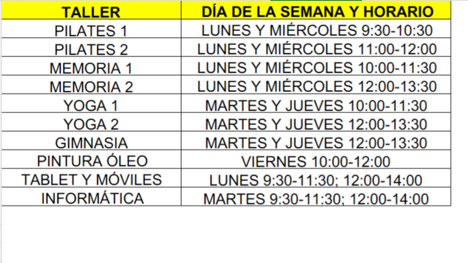 Talleres ofertados: