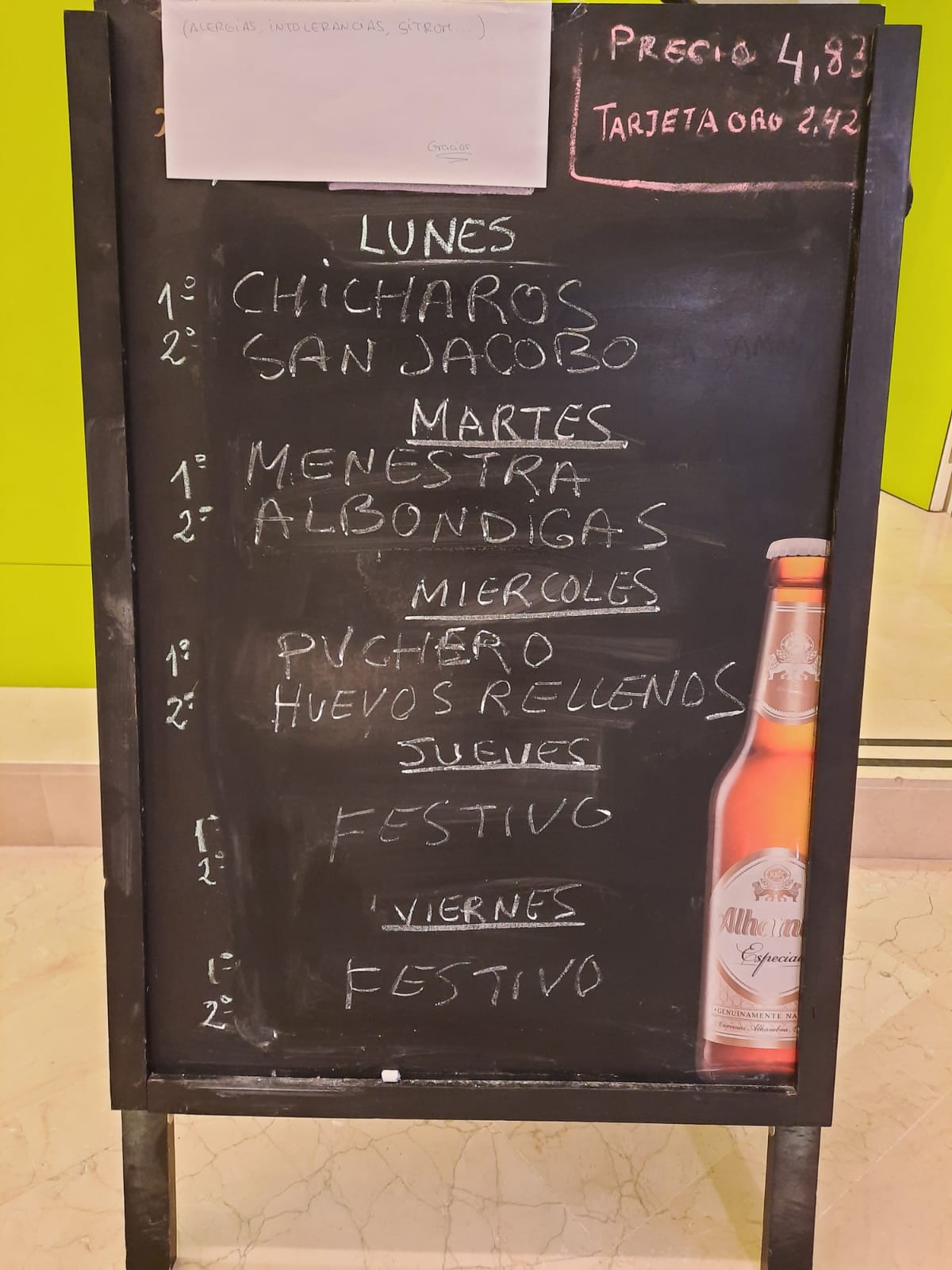 Si desea reservar su menú para recoger llame al 646732466. Entrada por la puerta principal.