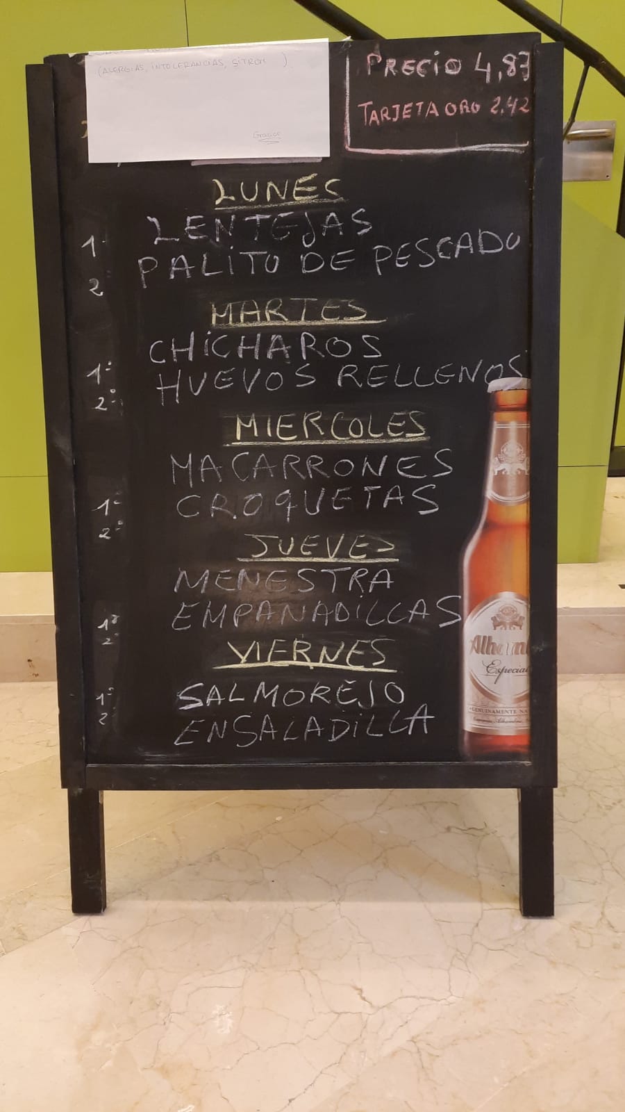 • INFORMACIÓN PRECIO MENÚS TARJETA.