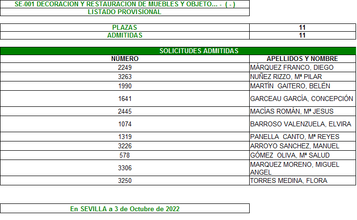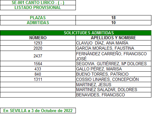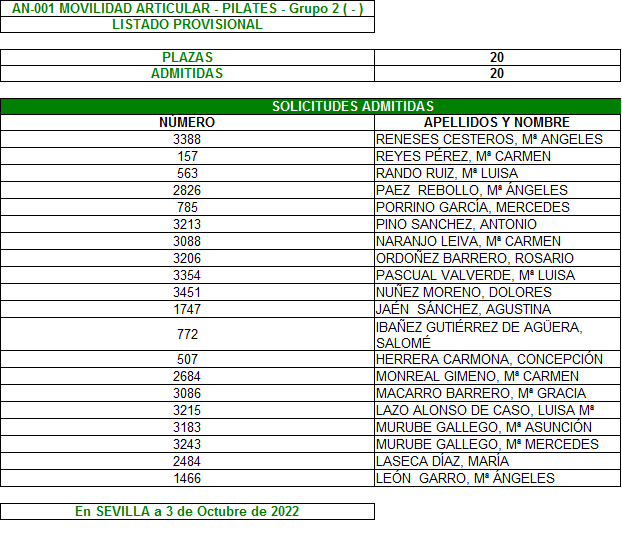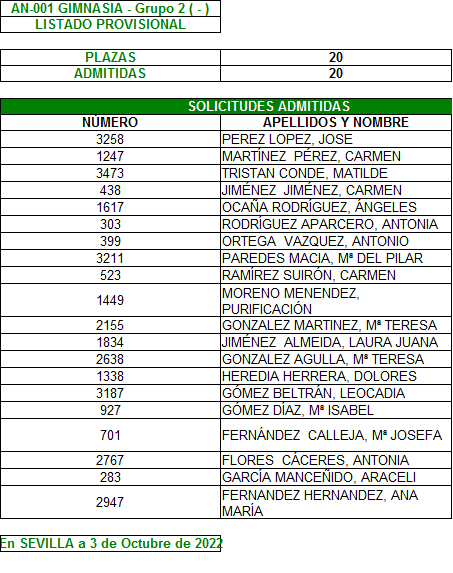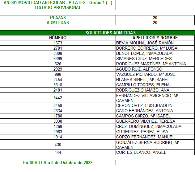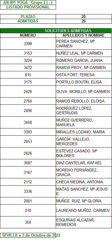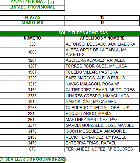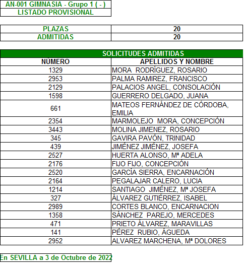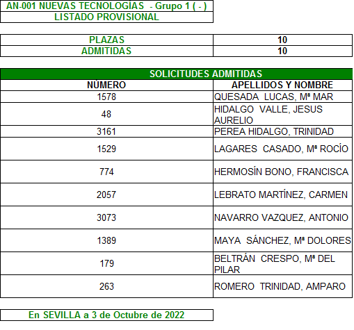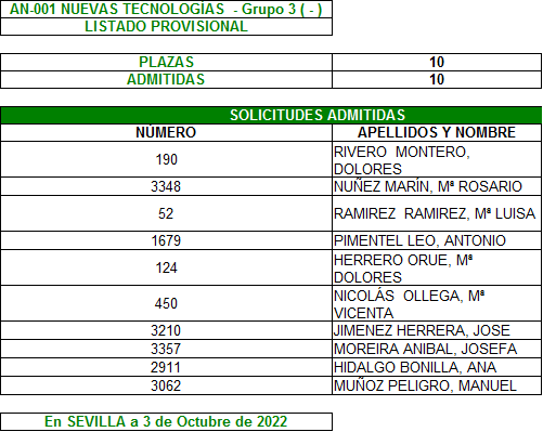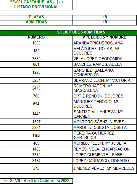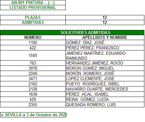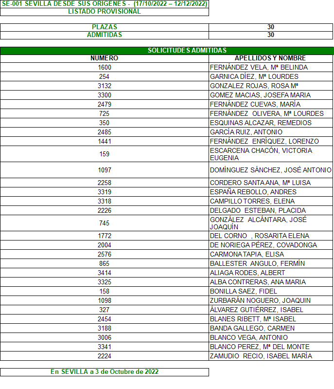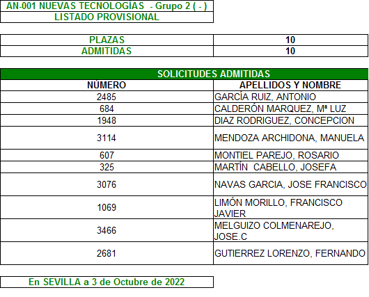 Plazo de reclamación del 3 al 7 de Octubre, ambos inclusive.