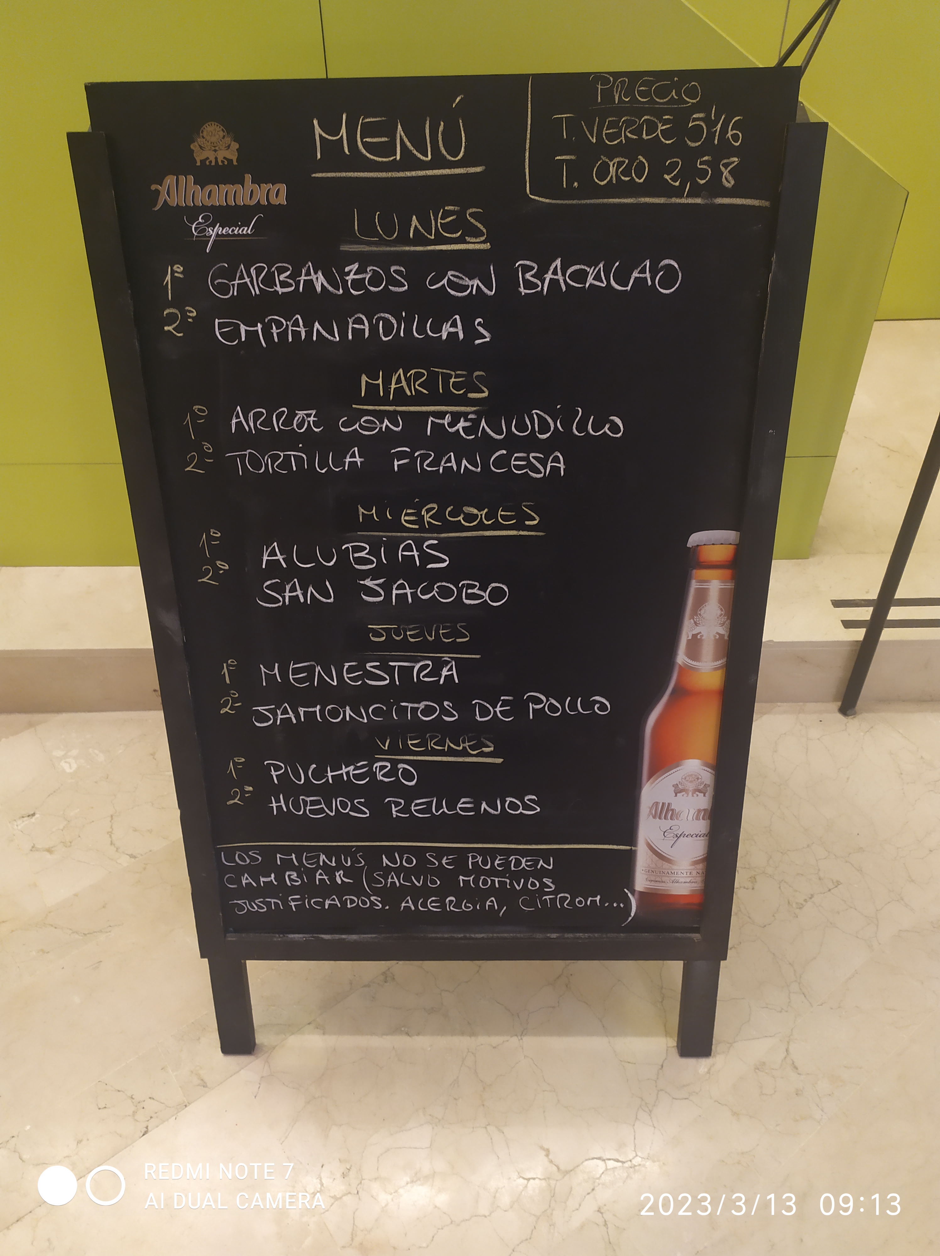 – ENTRANTES: c/4: ensalada mixta, olivas sevillanas, patatas camperas (aliñadas con tomate, atún y huevos)