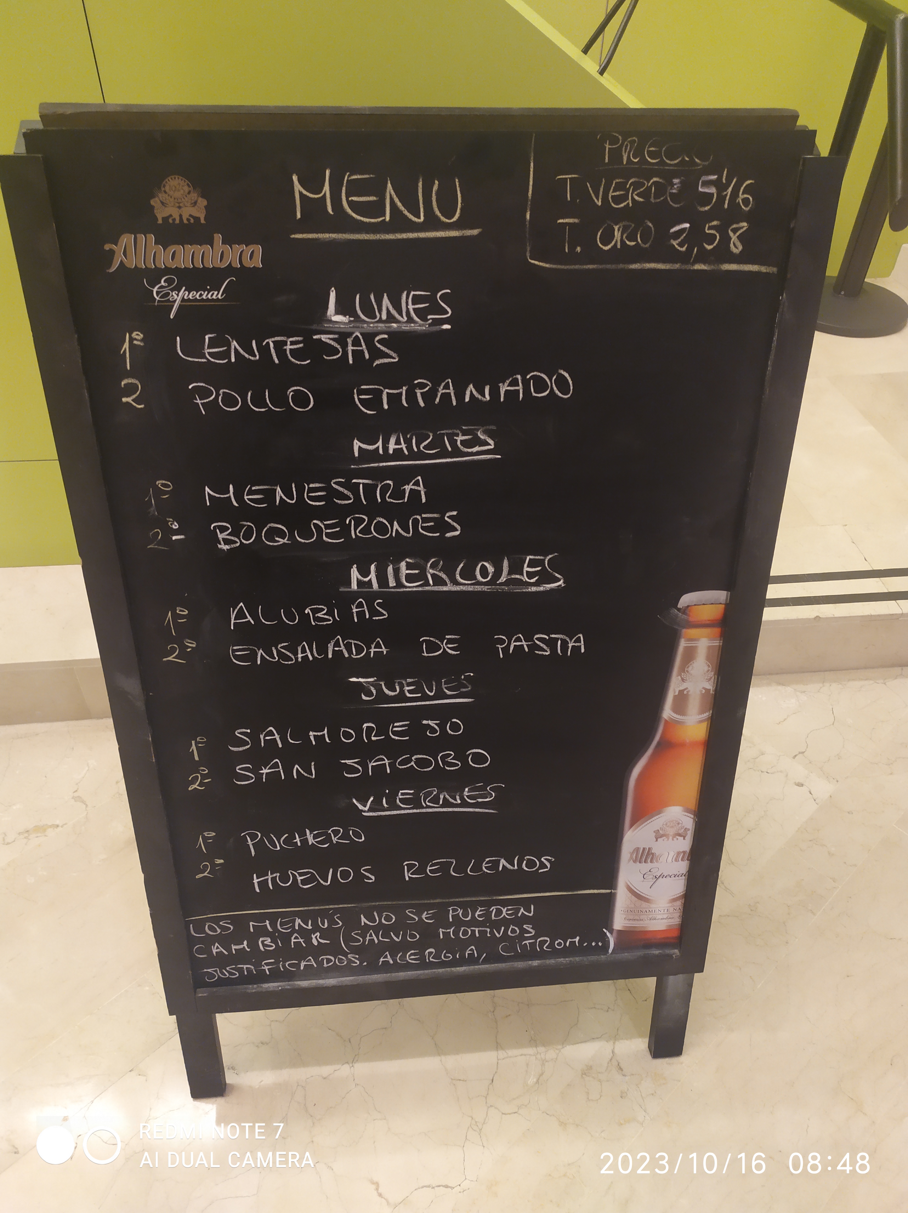 MENÚ SEMANA DEL 16 AL 20 DE OCTUBRE