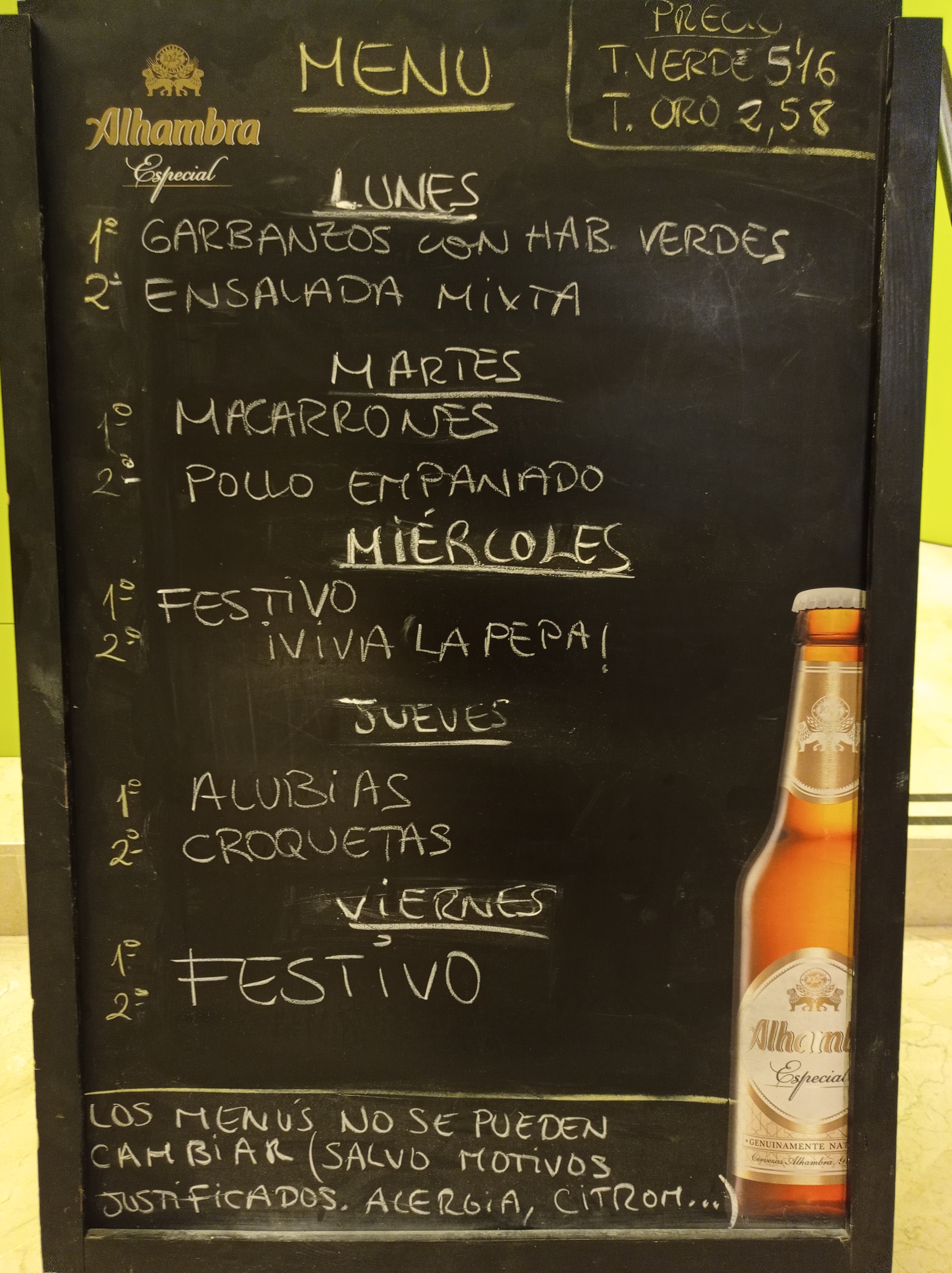- Recepción: una bebida (cerveza o refresco) por persona con aperitivo de aceitunas y patatas fritas.