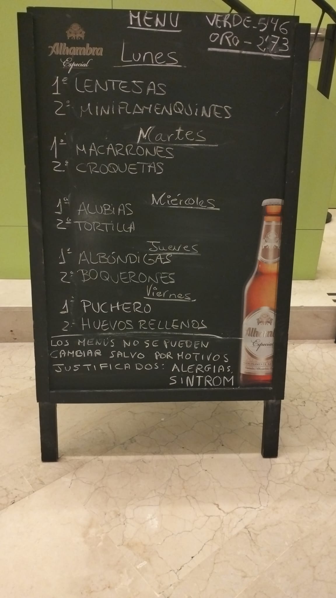 • INFORMACIÓN PRECIO MENÚS TARJETA.