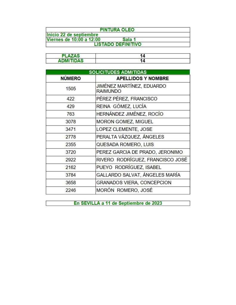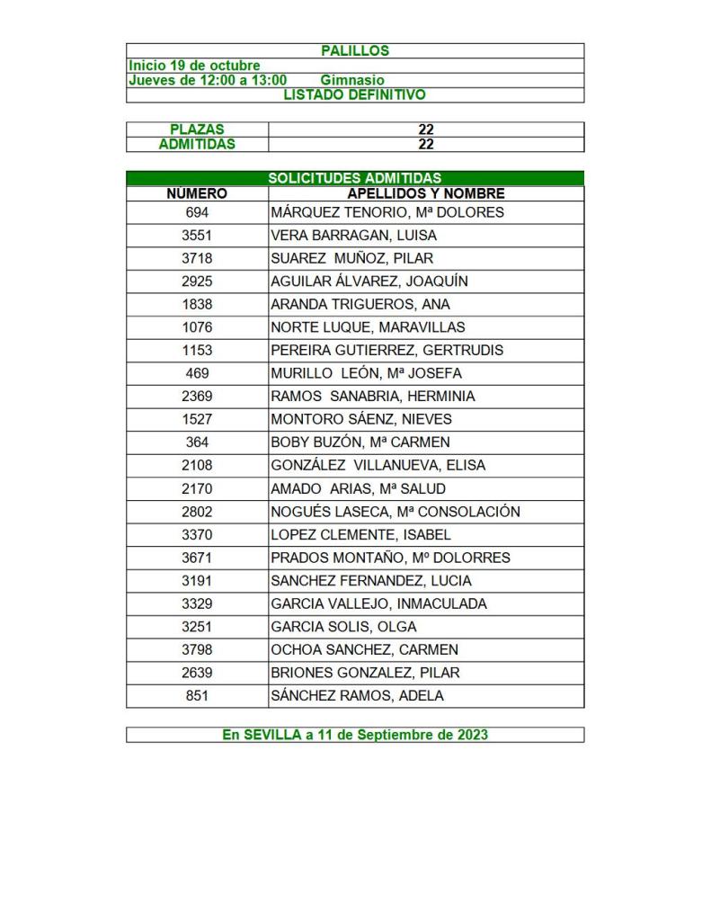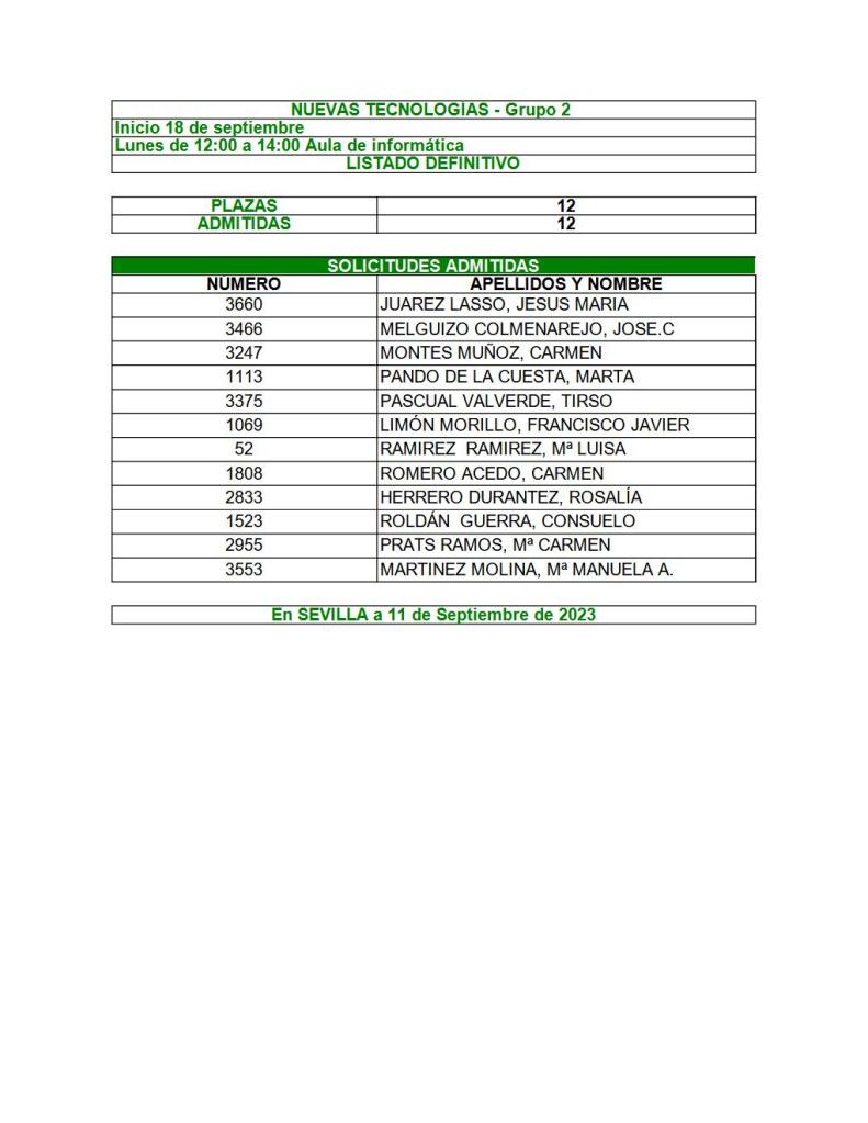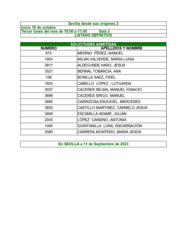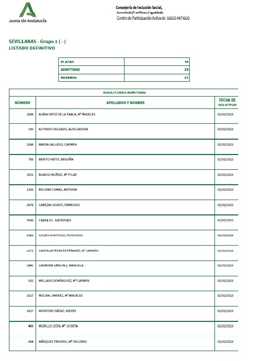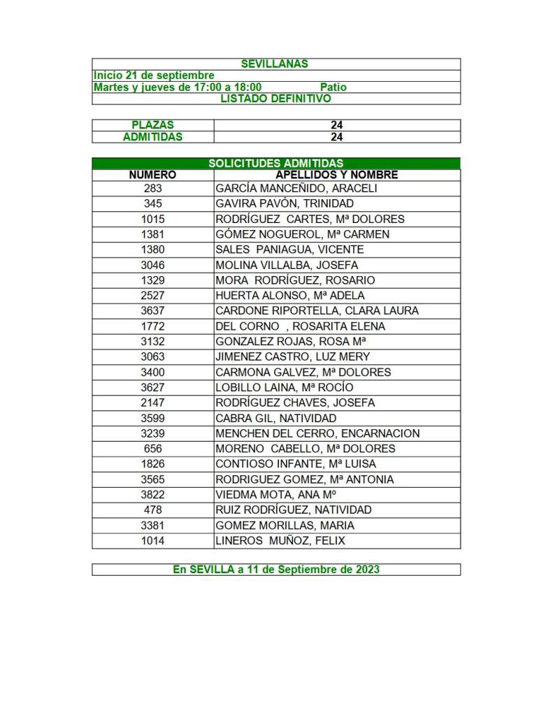 Se publican a continuación los admitidos y reservas del taller de sevillanas,que comenzará el próximo lunes,6 de febrero,a las 17:30,en el CPA.