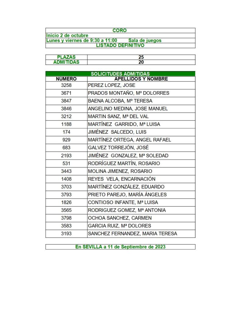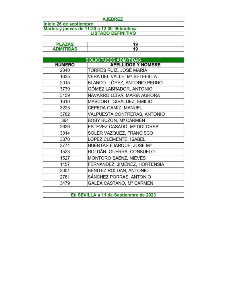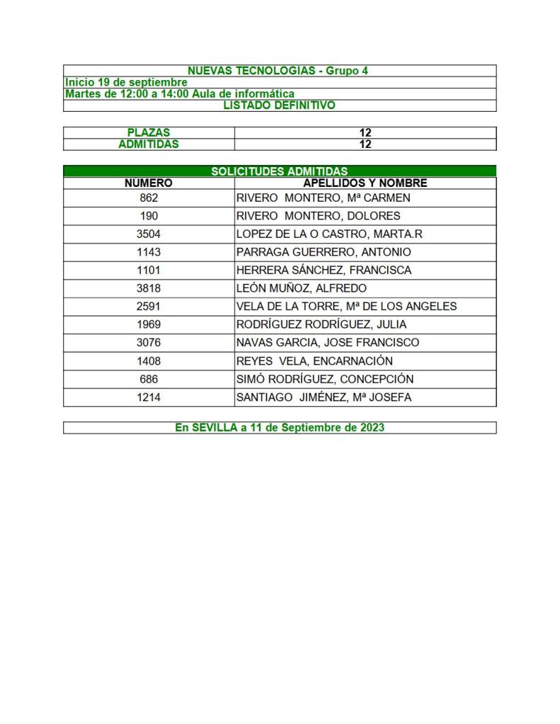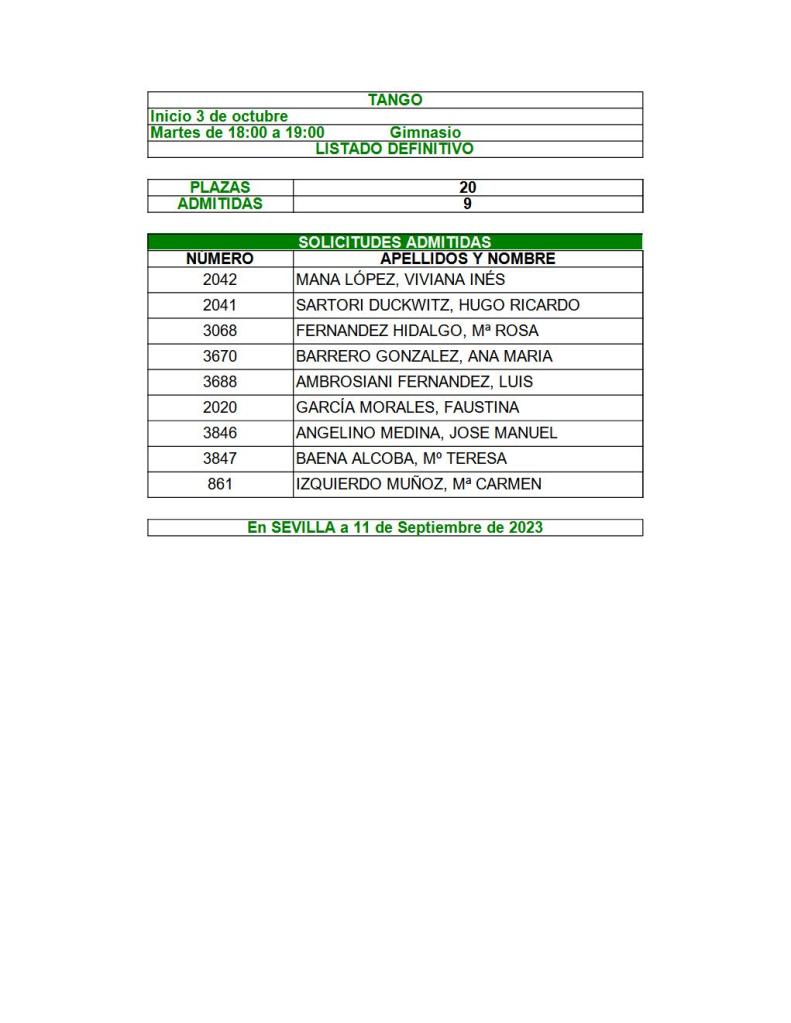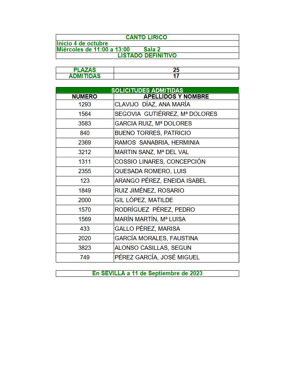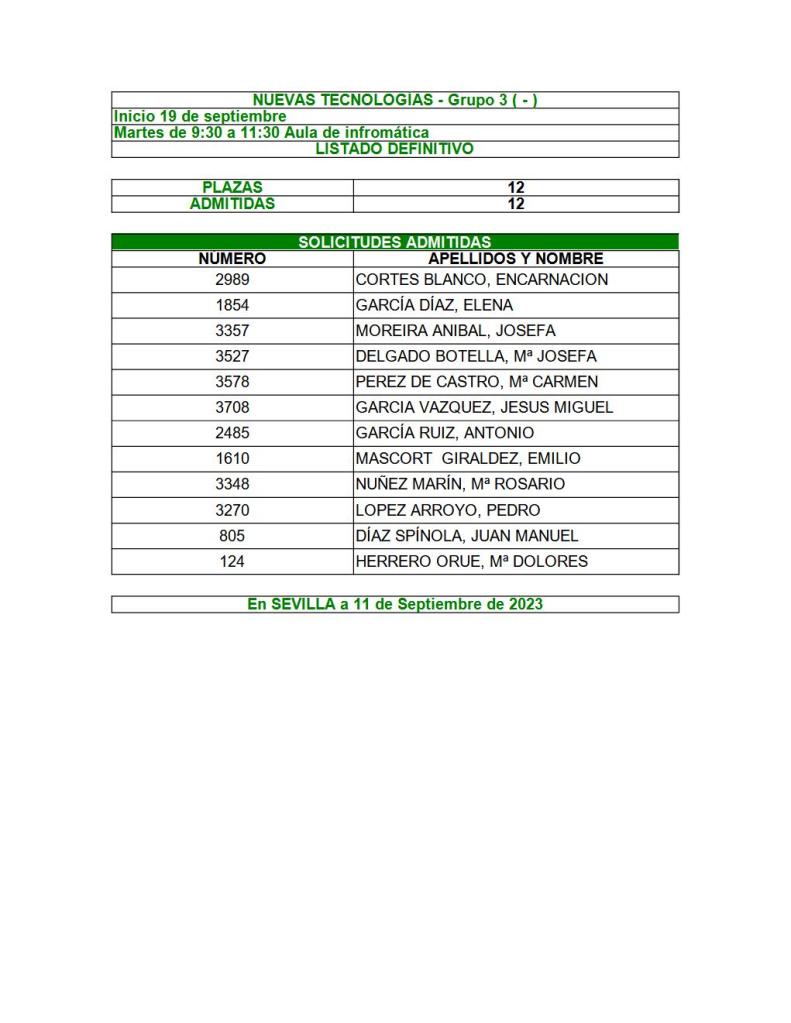 Se publican a continuación los admitidos y reservas del taller de sevillanas,que comenzará el próximo lunes,6 de febrero,a las 17:30,en el CPA.