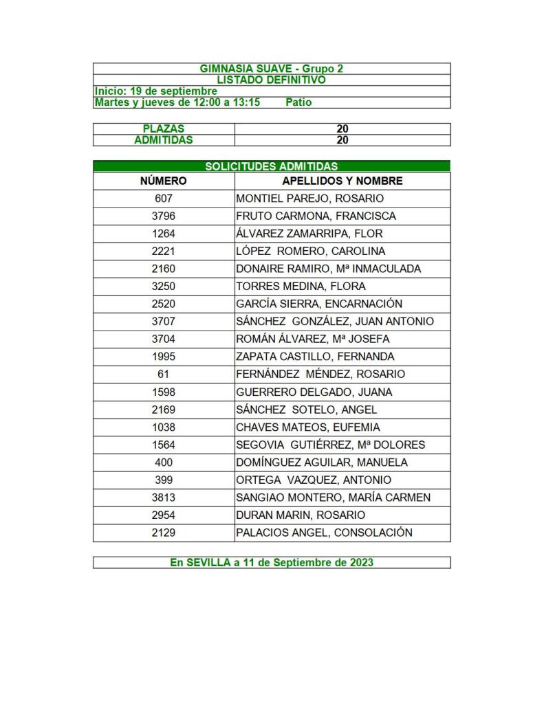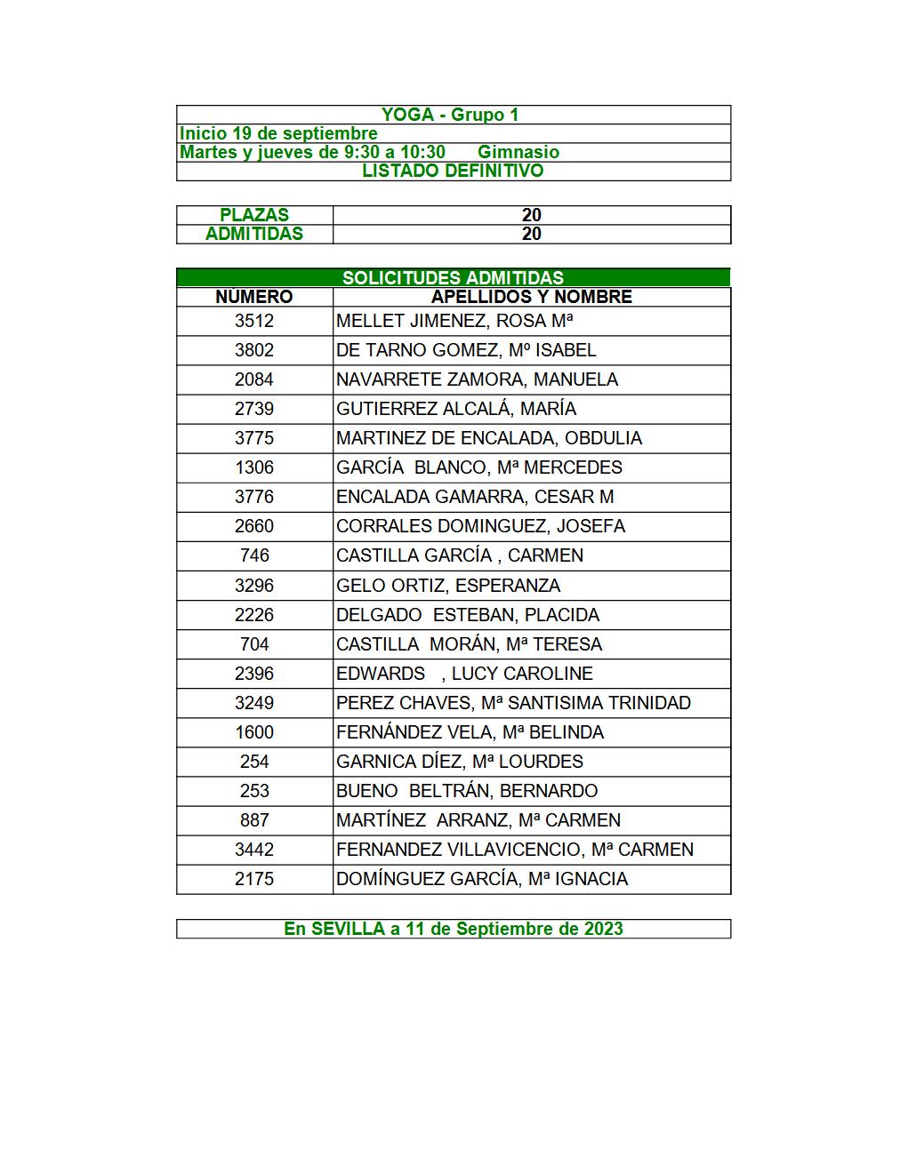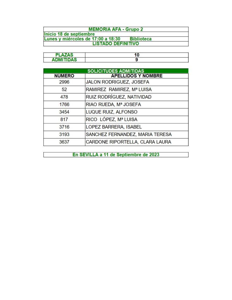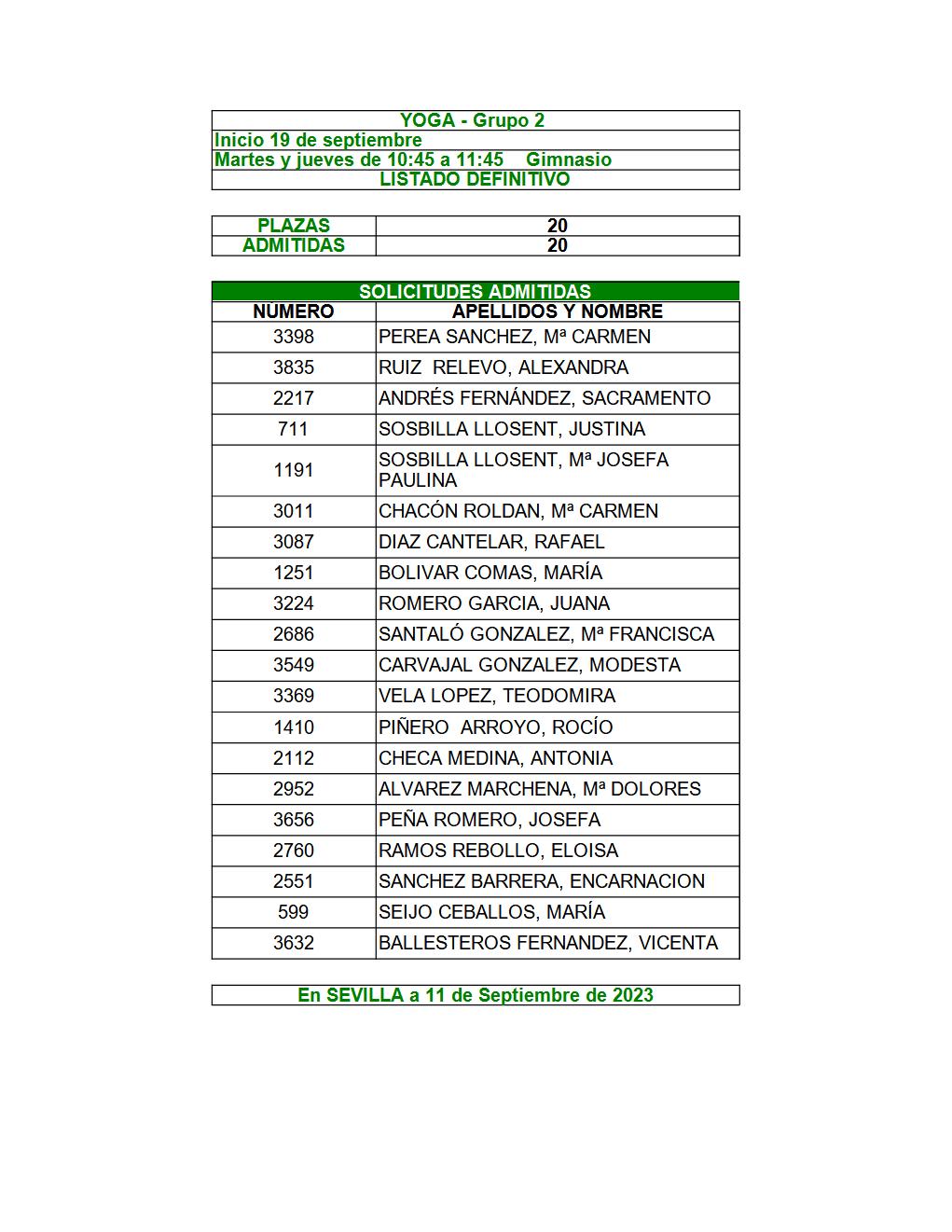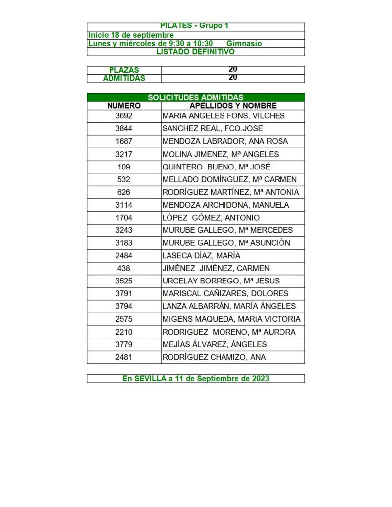 Se publican a continuación los admitidos y reservas del taller de sevillanas,que comenzará el próximo lunes,6 de febrero,a las 17:30,en el CPA.