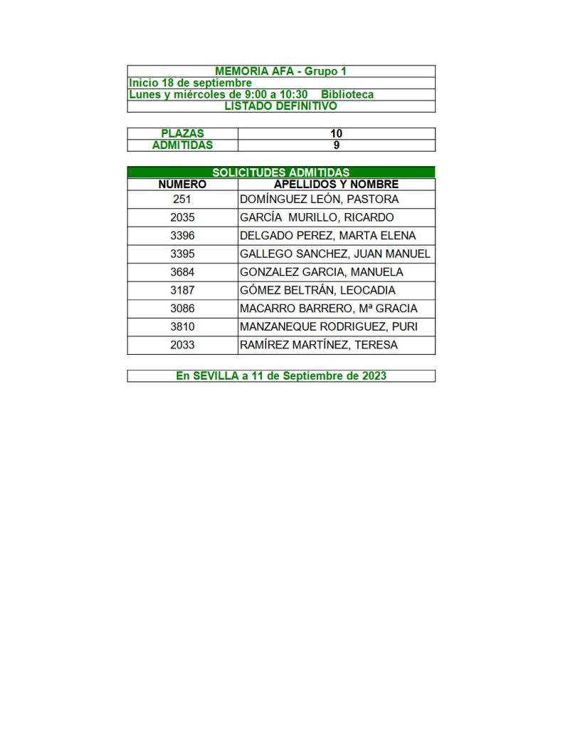 | MEMORIA 1 | LUNES Y MIERCOLES 10:00- 11:30 | BIBLIOTECA |