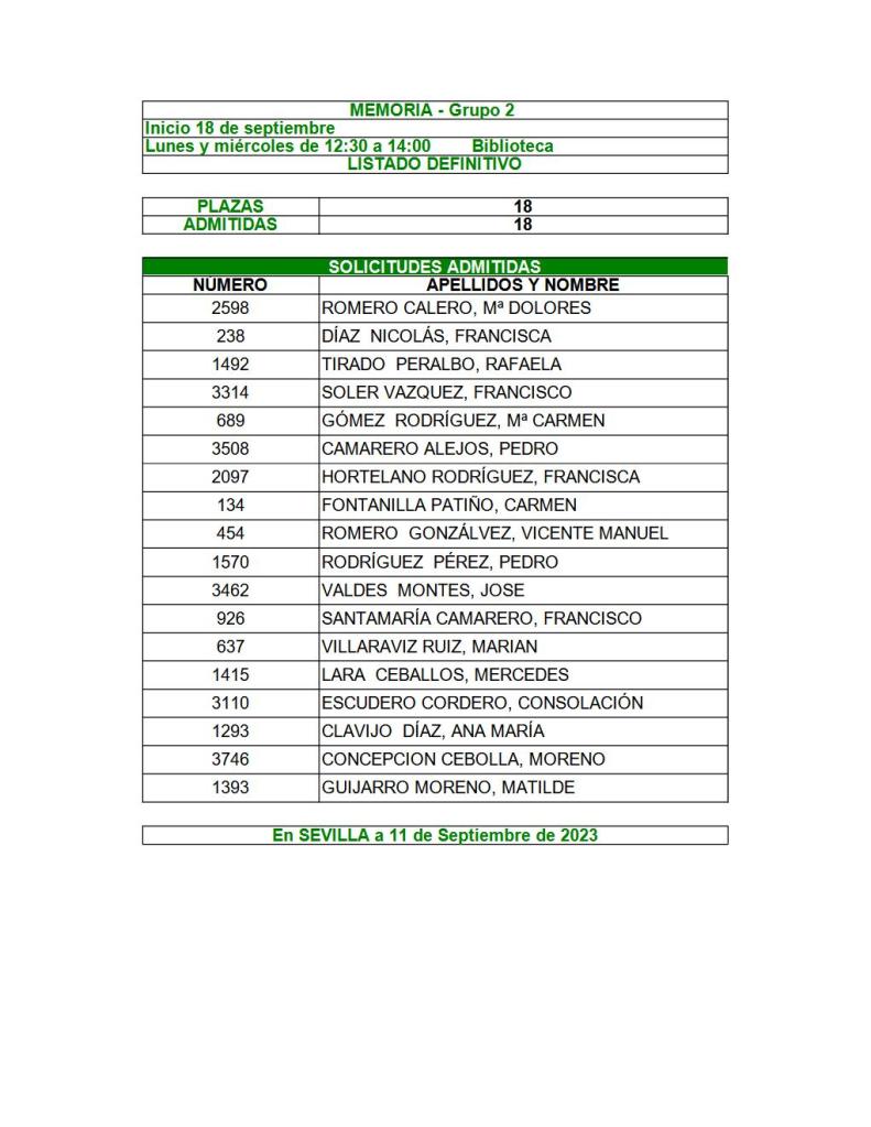 | MEMORIA 2 | LUNES Y MIERCOLES 12:00- 13:30 | BIBLIOTECA |