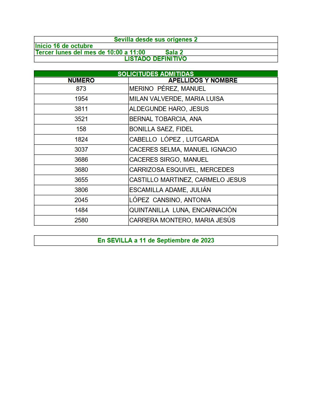 | SEVILLA ORIGENES 2 | LUNES MENSUAL 10:00-11:00 | SALA 2 |